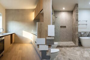 Modern bathroom remodels including walk-in showers, custom vanities, heated floors, premium tile work and spa-like designs.
